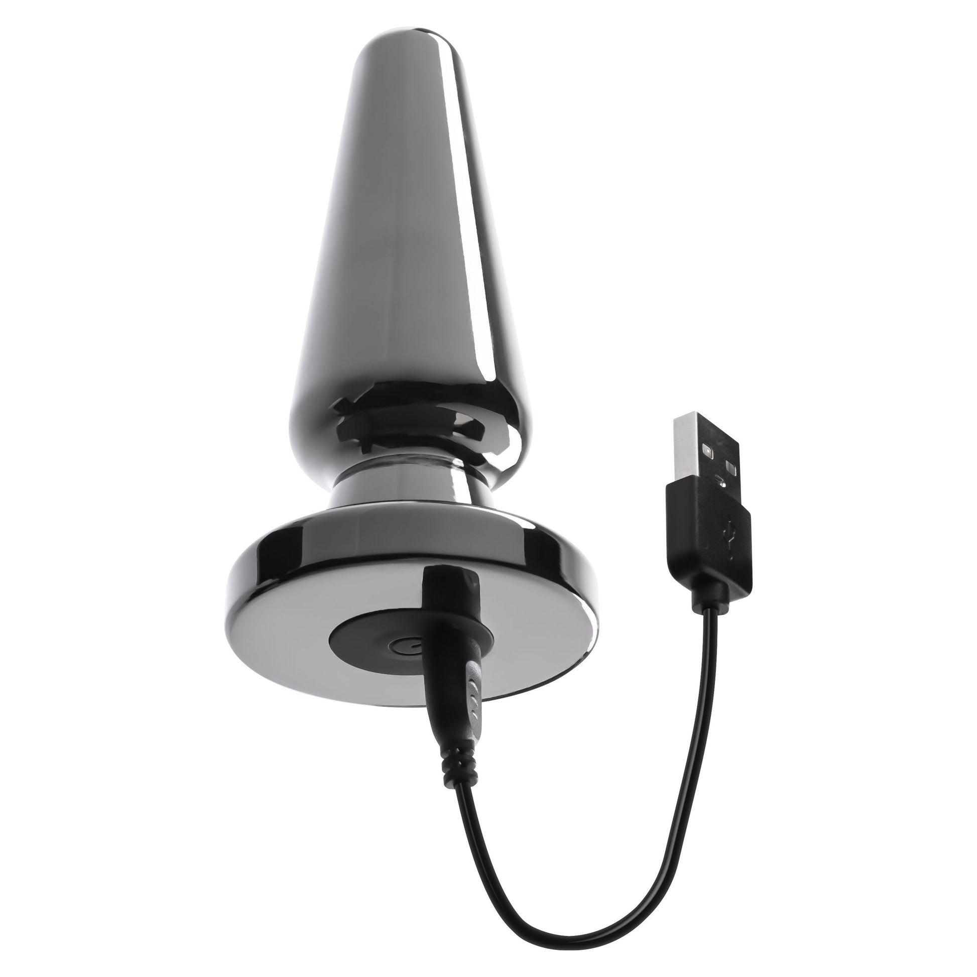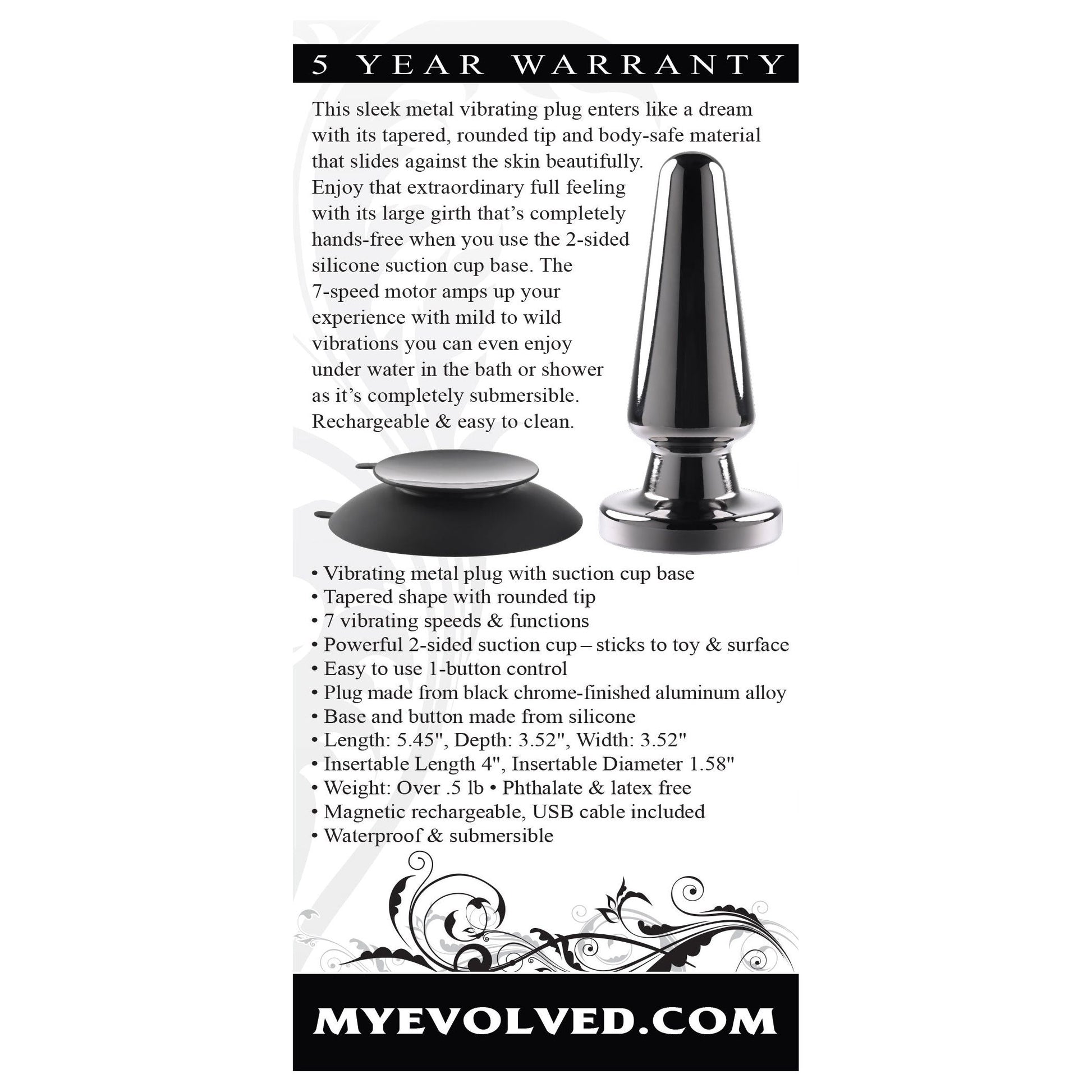 This sleek metal vibrating plug enters like a dream with its tapered, rounded tip and body-safe material that slides against the skin beautifully. Enjoy that extraordinary full feeling with its large girth that's completely hands-free when you use the 2-sided silicone suction cup base. The 7-speed motor amps up your experience with mild to wild vibrations you can even enjoy under water in the bath or shower as its completely submersible. Rechargeable and easy to clean.