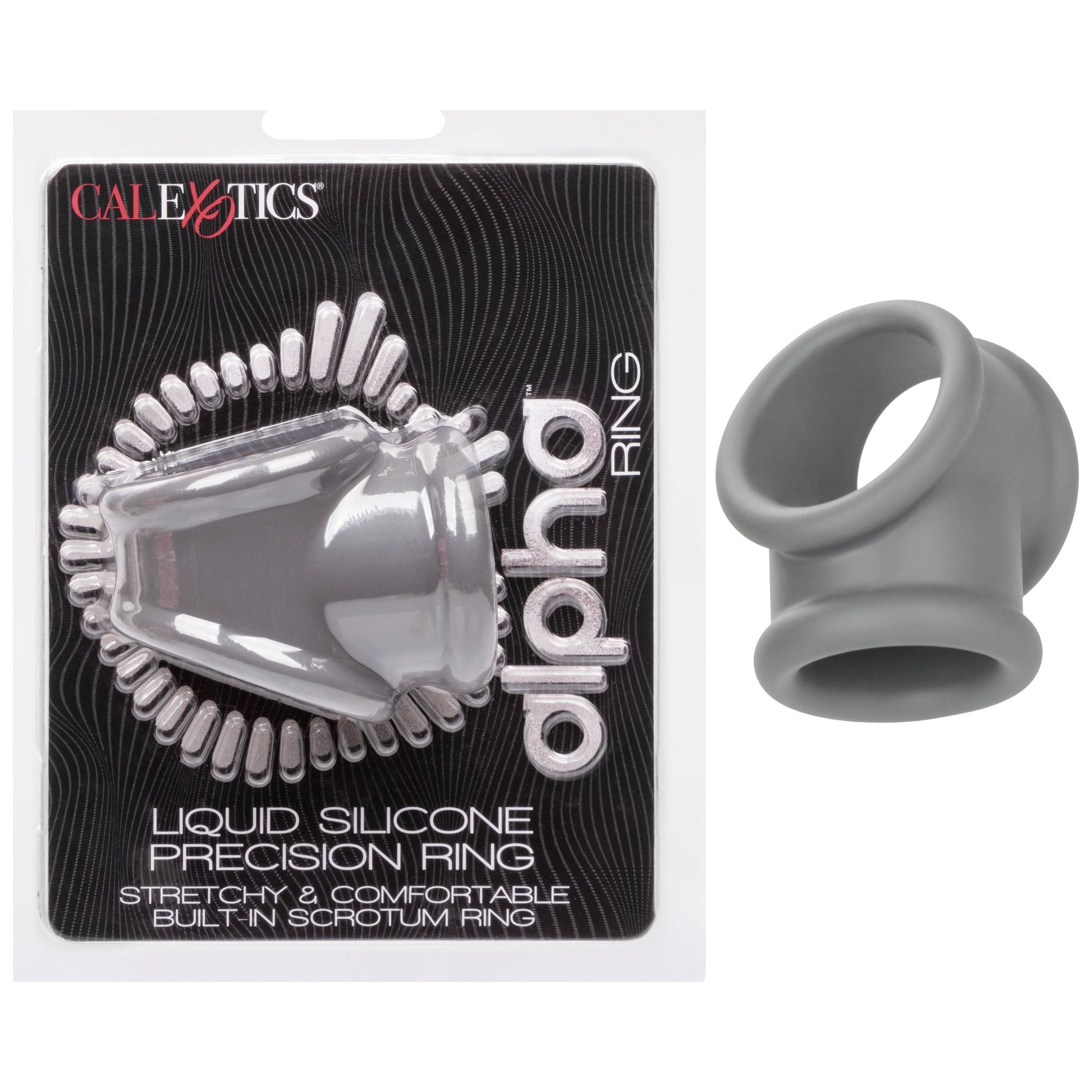 From bashful beginners to erotic experts, the Alpha Liquid Silicone Precision Ring will wrap you up tight in pleasure with the ultra plush, ultra stretchy enhancer ring. The playful ring is made from an ultra-stretchy liquid silicone with a daring dual ring design. This stretchy, comfortable cock ring is made to increase stamina, improve sensitivity and deliver superior erection support. The durable scrotum support ring lets you indulge even further into increased stamina. Look for an explosive pleasure experience while the plush ring squeezes with every movement. The premium liquid silicone is soft, smooth, durable and waterproof.