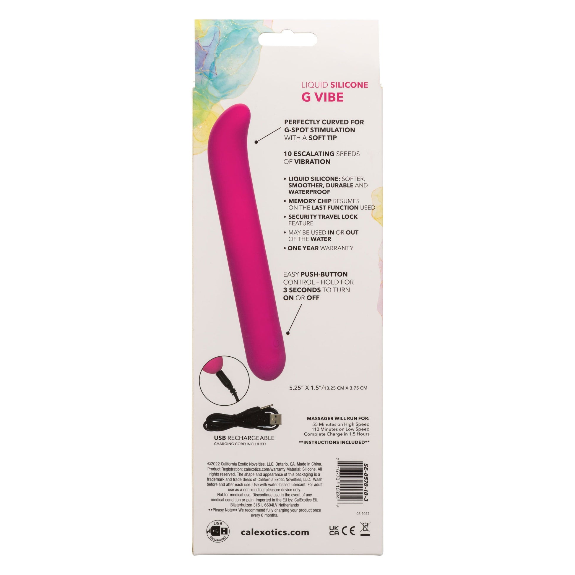 Indulge in a pleasure paradise with the teasing Bliss Liquid Silicone G Vibe. This sensational vibe features an intimately curved tip, body-forming liquid silicone design, and 10 powerful speeds of vibration. The curved tip and 100% liquid silicone body are perfect for caressing internal and external sweet spots. Get playful with each increase of the 10 incremental speeds of vibration with the easy-touch control button. Effortlessly control pure pleasure with an easy-touch silicone button and hold for 3 seconds to turn on or off. The ultra-plush liquid silicone is great for exploring sensual sweet spots and intimate pleasure points with ease. Use the smooth single button control to enjoy up to 110 minutes of vibrating pleasure. Charge up your passion in only 1.5 hours by plugging the provided USB cable into the self-sealing charging port on the base of the massager.