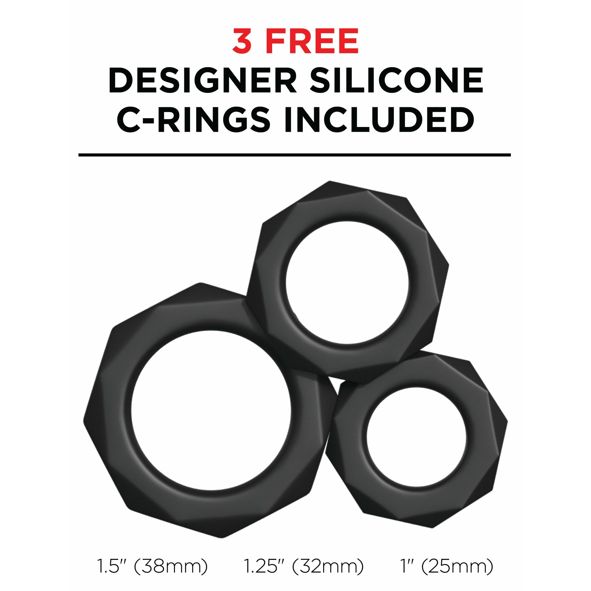 Cleaning is incredibly easy; the Extender Pro's interior sleeve lifts out effortlessly for a thorough rinse in warm soapy water (you can also use a good toy care fluid/foam) after use. Compatible with any favorite water-based lubricant. Not recommended for use in water. 3 silicone cock rings are included.