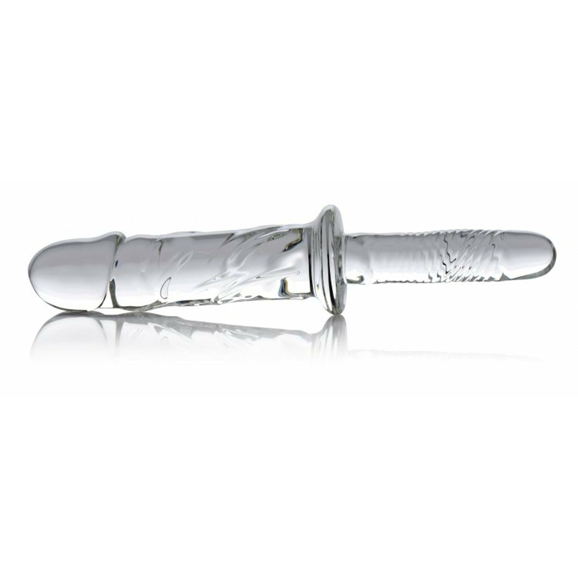 Shove this textured glass dildo into your eager hole or play with a partner! Designed with a grooved handle, this rod allows you to take a secure grip and easily thrust at your desired length and pace. The realistic shape is complimented by protruding ridges that will offer a unique internal massage. Made of shatter-resistant glass, this shaft is rock-solid and heavy to create a greater sense of fullness. Experiment with temperature play by submerging it in hot or cold water prior to use. This hypoallergenic material is non-porous, allowing for thorough sterilization with mild soap and warm water. Compatible with all lubricant types.