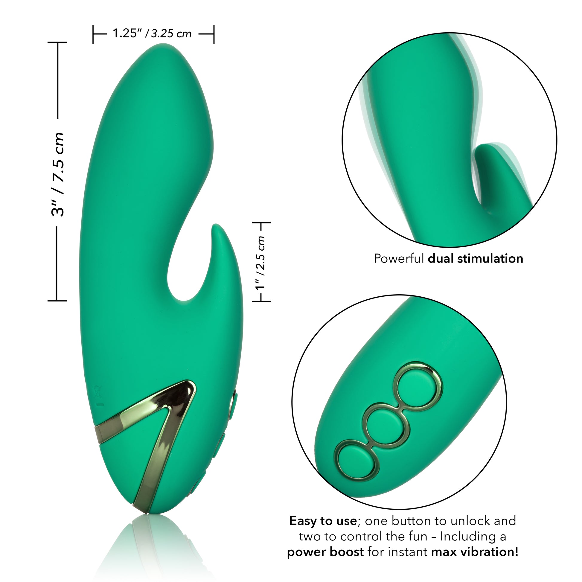 Indulge personalized pleasure with the flexible massager body and 10 vivacious vibration, passionate pulsation and erotic escalation. Indulge super-charged pleasure with the Power Boost function for intense vibrations. The easy-touch 2-button control lets you cycle through the knee-shaking settings or use the secure travel lock feature to let your passions take you.