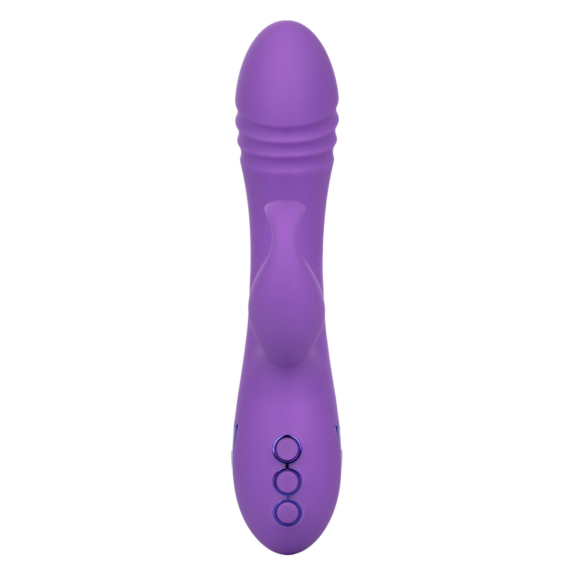 This device has a powerful rotating "G" massager built into the head of the of the device, ensuring it knows exactly where the good waves are. The triple-fluttering teaser gives this outstanding vibrator the one-two ride that you've been missing. With three speeds of rotating "G" action within the shaft and 10 functions of independent vibration, pulsation, and escalation built into the attached stimulator, you will always feel your own personal buddy system in intense action.