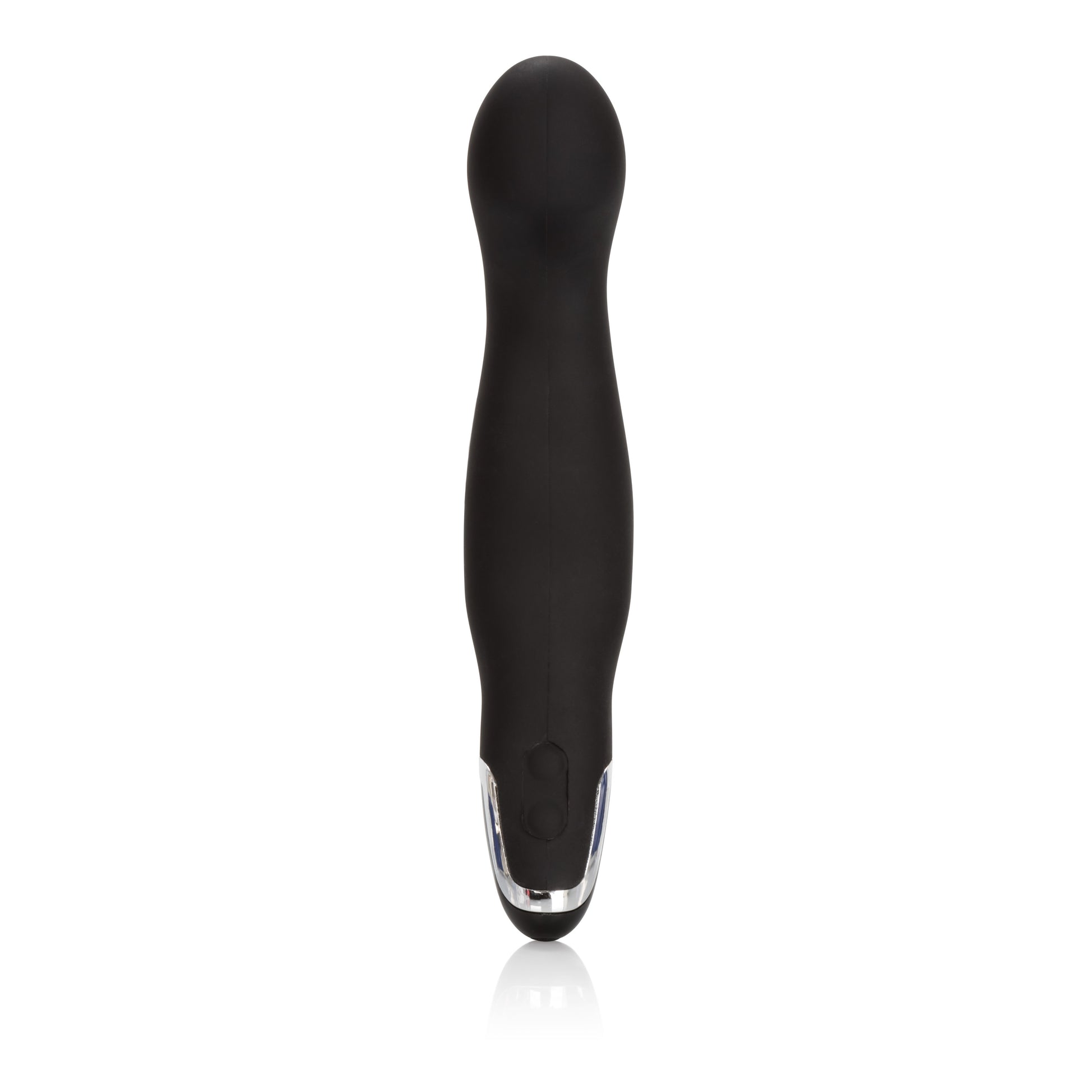 The curvaceous personal massager measures a generous 6.25” x 1.5”/16 cm x 3.75 cm, and is made from smooth, unscented, phthalate free silicone, with ABS silver plating décor. The contoured shaft features a curved, angled tip for precision stimulation and ultimate contact satisfaction. Easy push button controls activate your preferred pleasure pace, and the state-of-the-art memory chip resumes intimate seduction on the last function selected.