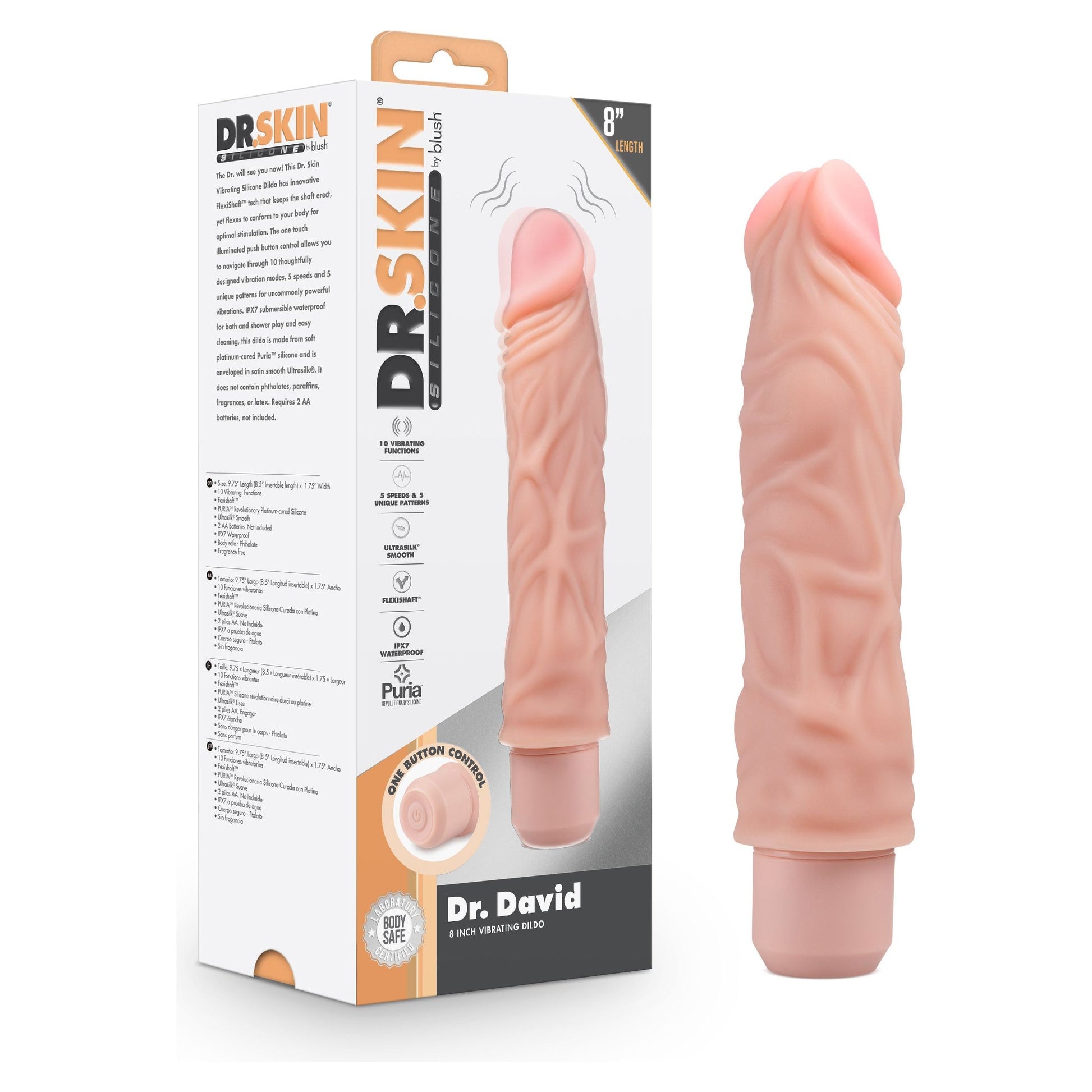 Dr. Skin Silicone - Dr. David - 8 Inch Vibrating Dildo - Beige