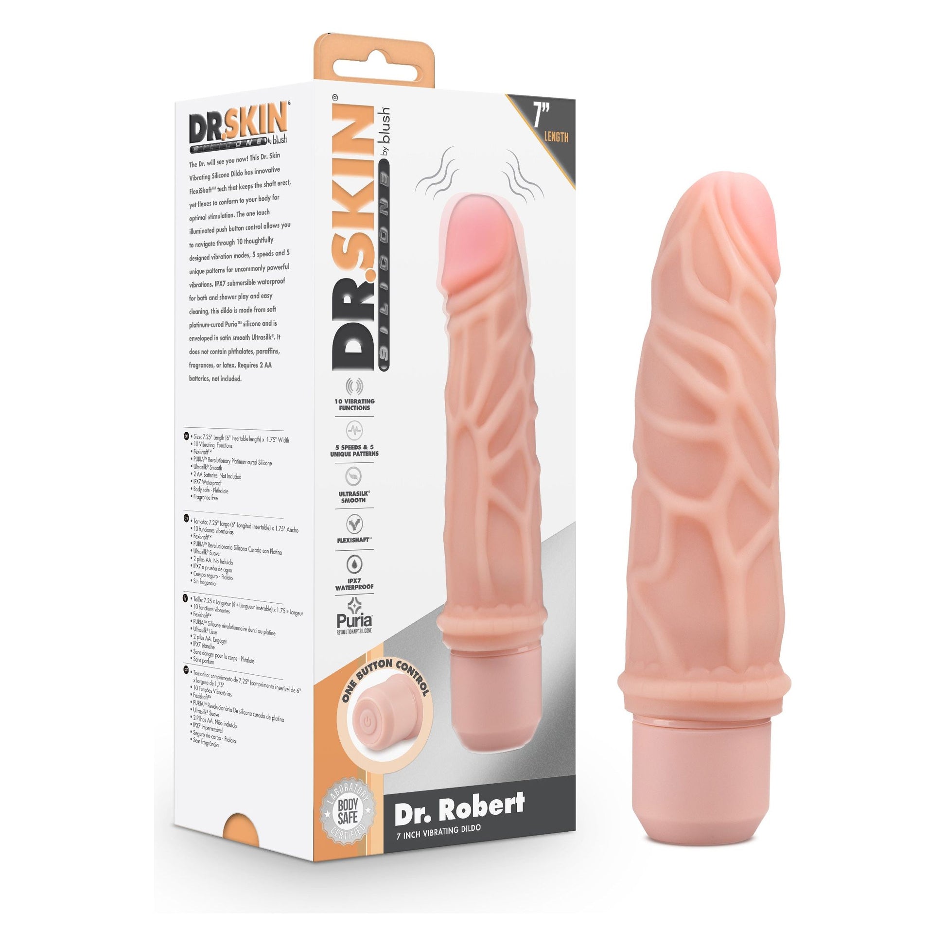 Dr. Skin Silicone - Dr. Robert - 7 Inch Vibrating Dildo -Beige