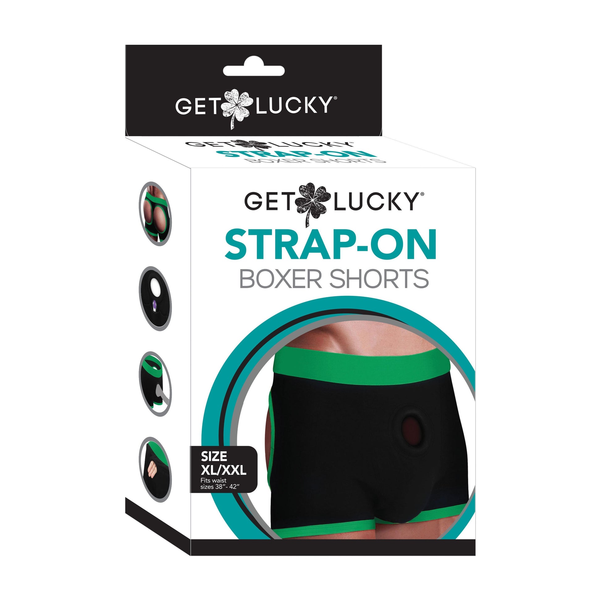 Get Lucky Strap-on Boxer Shorts - Xlarge/xxlarge - Black/green