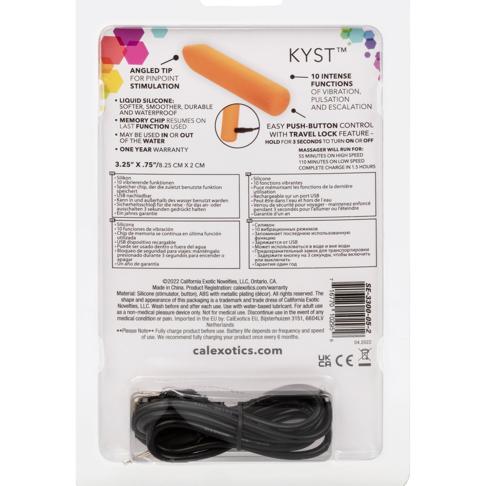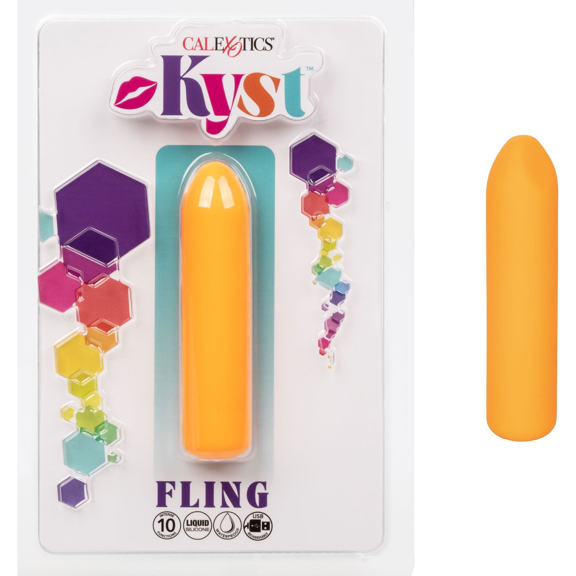 No matter where your travels take you, enjoy a little me time with the Kyst Fling mini massager. The powerful mini liquid silicone bullet is packed with 10 functions of vibration, memory chip, and a pliable body. The mini massager fits between your fingers to let you deliver pinpoint tantalization and thrill with rumbling vibrations. Get playful while you cycle through 10 indulgent vibration, pulsation and escalation functions with the easy-touch control button. The ultra-plush liquid silicone and uniquely flexible body are great for exploring sensual sweet spots and intimate pleasure points with ease. With a smooth shape and supple surface, you'll be able to indulge in thrilling vibrations from any angle you desire. Charge up your passion in just 1.5 hours by plugging the provided USB cable into the self-sealing charging port on the base of the massager. Get playful with up to 110 minutes of vibrations with every charge. The slim massager's discreet size makes it the perfect travel companion, letting you embrace radiating pleasure wherever your fantasies take you.