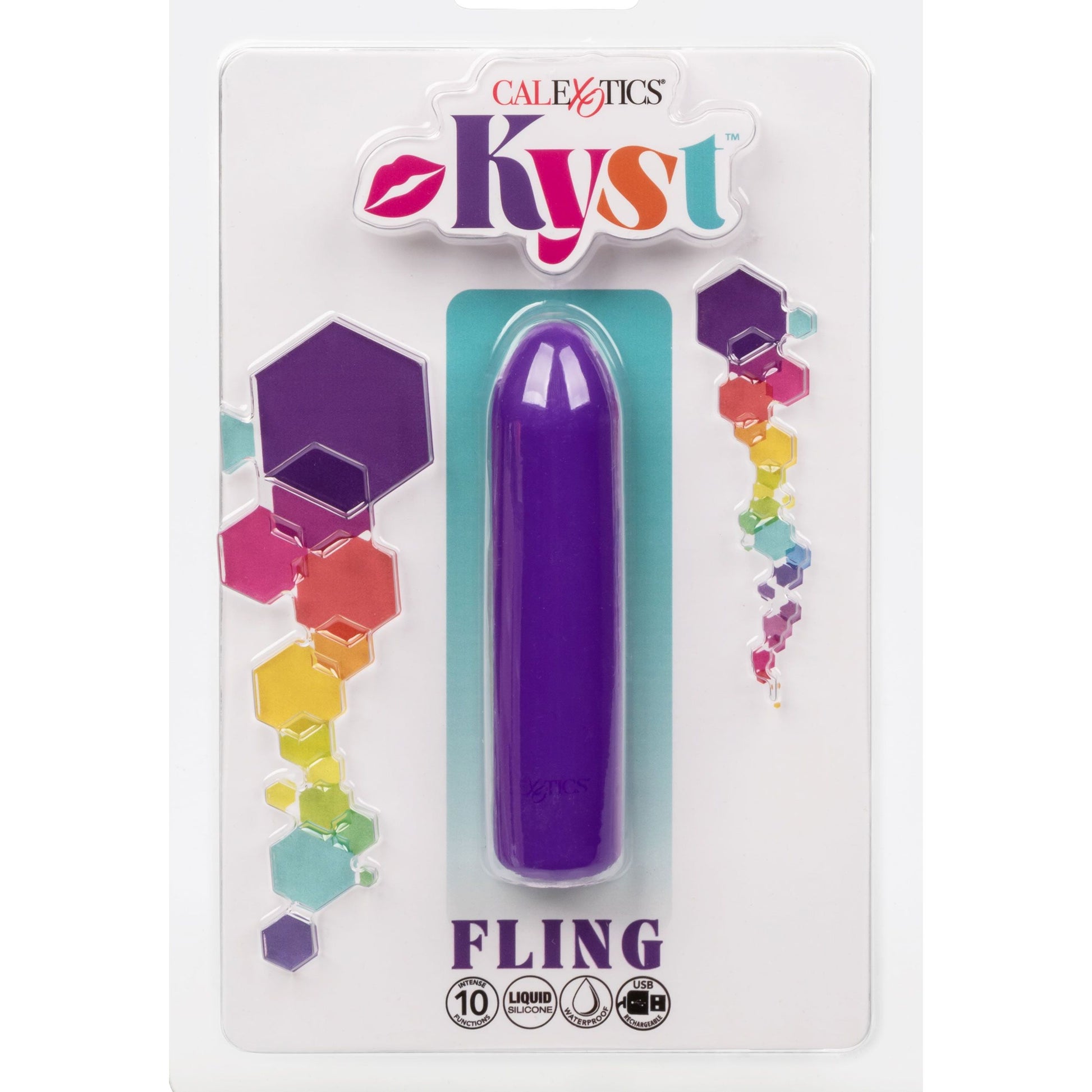 No matter where your travels take you, enjoy a little me time with the Kyst Fling mini massager. The powerful mini liquid silicone bullet is packed with 10 functions of vibration, memory chip, and a pliable body. The mini massager fits between your fingers to let you deliver pinpoint tantalization and thrill with rumbling vibrations. Get playful while you cycle through 10 indulgent vibration, pulsation and escalation functions with the easy-touch control button. The ultra-plush liquid silicone and uniquely flexible body are great for exploring sensual sweet spots and intimate pleasure points with ease. With a smooth shape and supple surface, you'll be able to indulge in thrilling vibrations from any angle you desire. Charge up your passion in just 1.5 hours by plugging the provided USB cable into the self-sealing charging port on the base of the massager. Get playful with up to 110 minutes of vibrations with every charge. The slim massager's discreet size makes it the perfect travel companion, letting you embrace radiating pleasure wherever your fantasies take you.