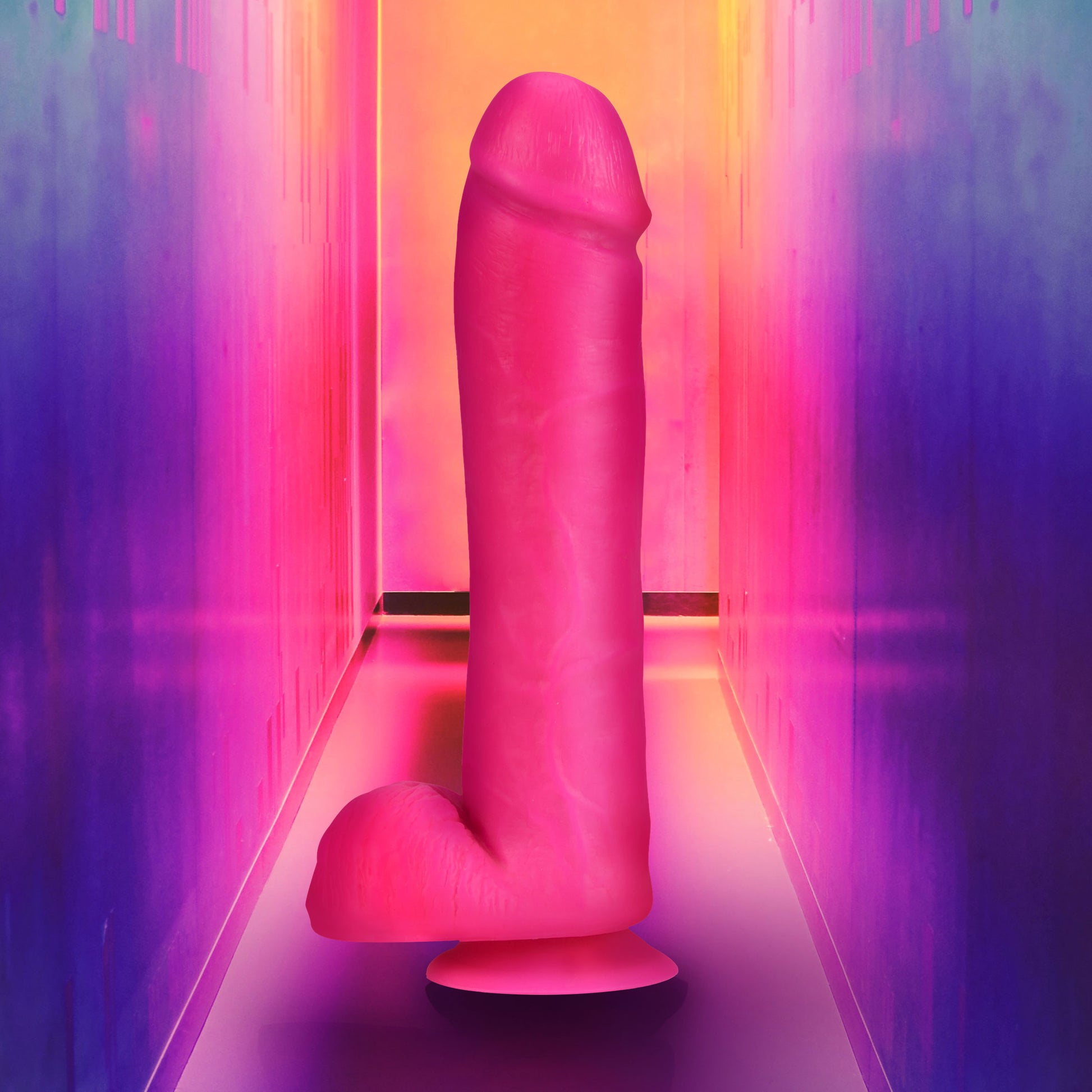 Neo Elite - 11 Inch Silicone Dual Density Cock with Balls - Neon Pink