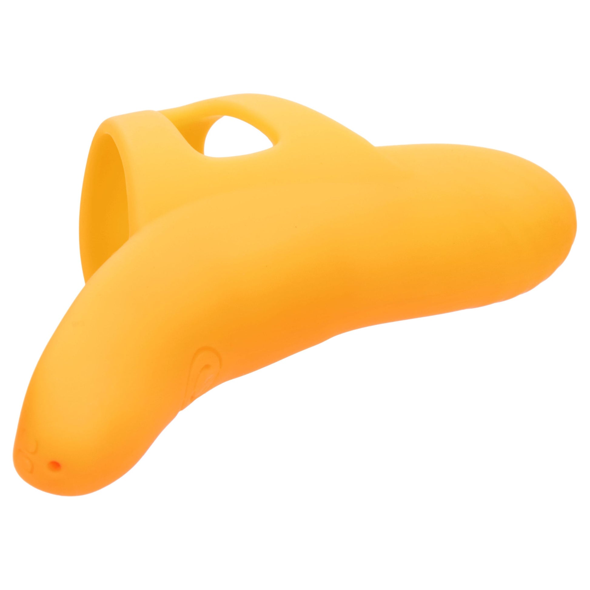 The Neon Vibes The Pleasure Vibe puts knee-shaking pleasure at your very fingertips! The ergonomically curved finger vibrator is sure to thrill with pinpoint stimulation and full-coverage vibrations. The playful finger vibe indulges your every fantasy with 10 functions of vibration and sensual pleasure ridges. The contoured finger shape and ultra-plush silicone are made to explore sensual sweet spots and pinpoint intimate desires with ease. The gently ribbed surface and contoured body let you deliver thrilling vibrations from any angle you desire. The stretchy and comfortable finger loop allows any user to play with ease. Find your favorite setting with the touch of a button while you cycle through 10 powerful functions of vibration, pulsation and escalation. The easy-touch control button lets you enjoy frustration-free control. Get playful with up to 60 minutes of stimulation with every charge. Charge up your passion in only 1 hour by plugging the provided USB cable into the self-sealing charging port on the base of the massager. The slim massager's discreet size makes it the perfect travel companion, letting you embrace radiating pleasure wherever your fantasies take you.