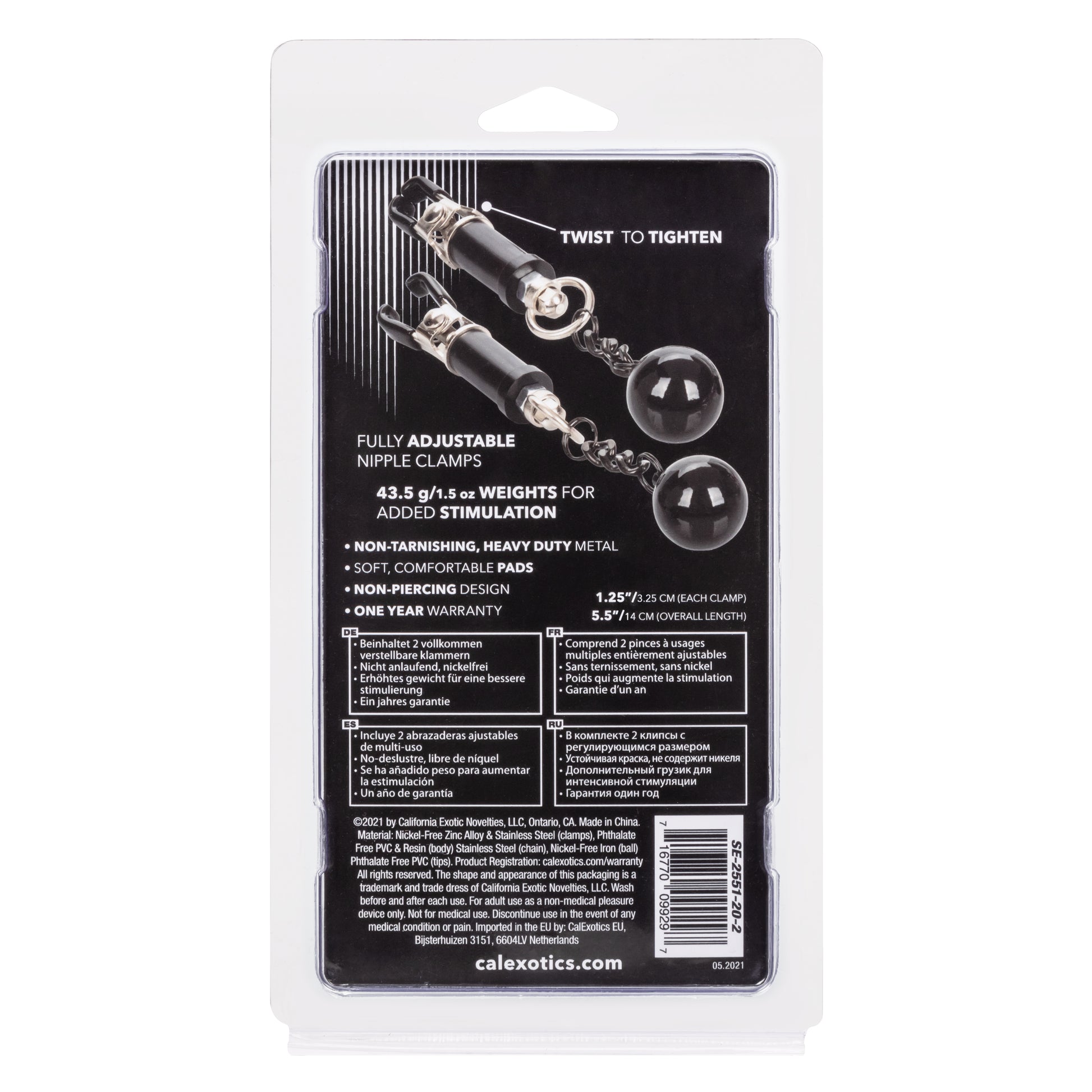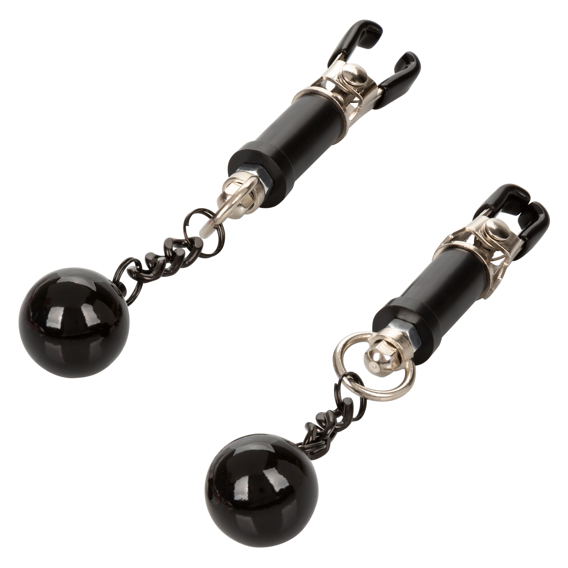 Blur the borders between pleasure and pain even further with the game-changing Nipple Grips Weighted Twist Nipple Clamps. Explore elevated sensation with 2 adjustable nipple clamps, unique twisting design, and swinging weight. Clamp the naughty clasps to your body and enjoy every rush of stimulation.