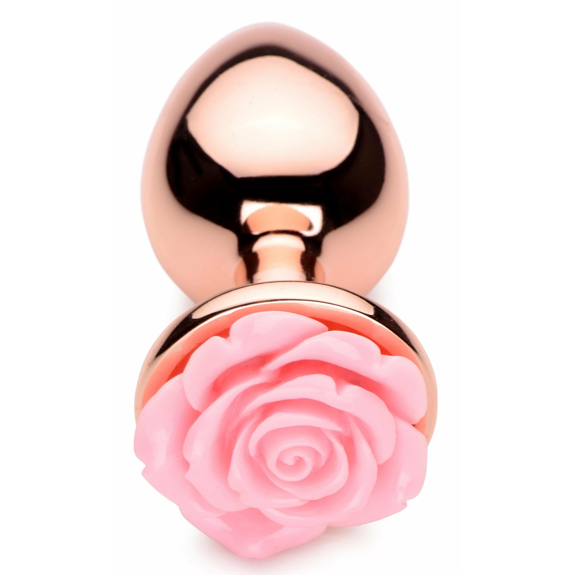 Enjoy this gorgeous rose-gold anal plug topped with a delicate, pink flower! Treat your booty like a shrine and adorn it with the most beautiful plug for your own delicate, pink flower. The nickel-free aluminum has a comfortable weight that pulls gently down against your backdoor.