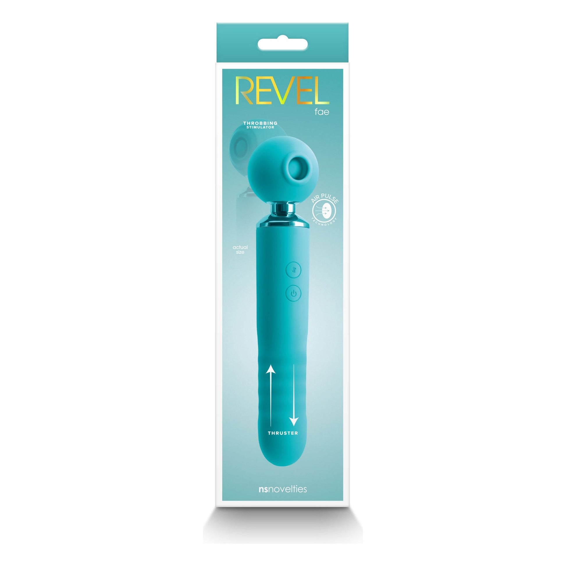 The Fae by Revel bundles multiple uses into one toy. Fae's sleek handle features ten thrusting modes while Faes dual purpose rounded head provides ten pulsing vibration modes or ten air pulse modes depending on your mood. Made of premium-grade silicone, water resistant, rechargeable, and suitable with all lubricants.