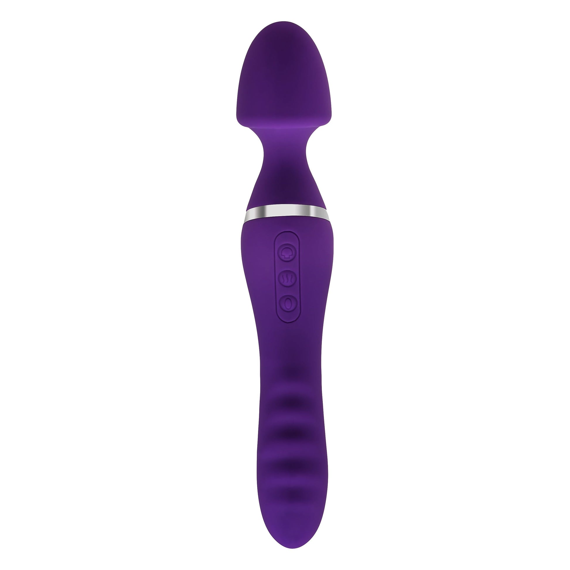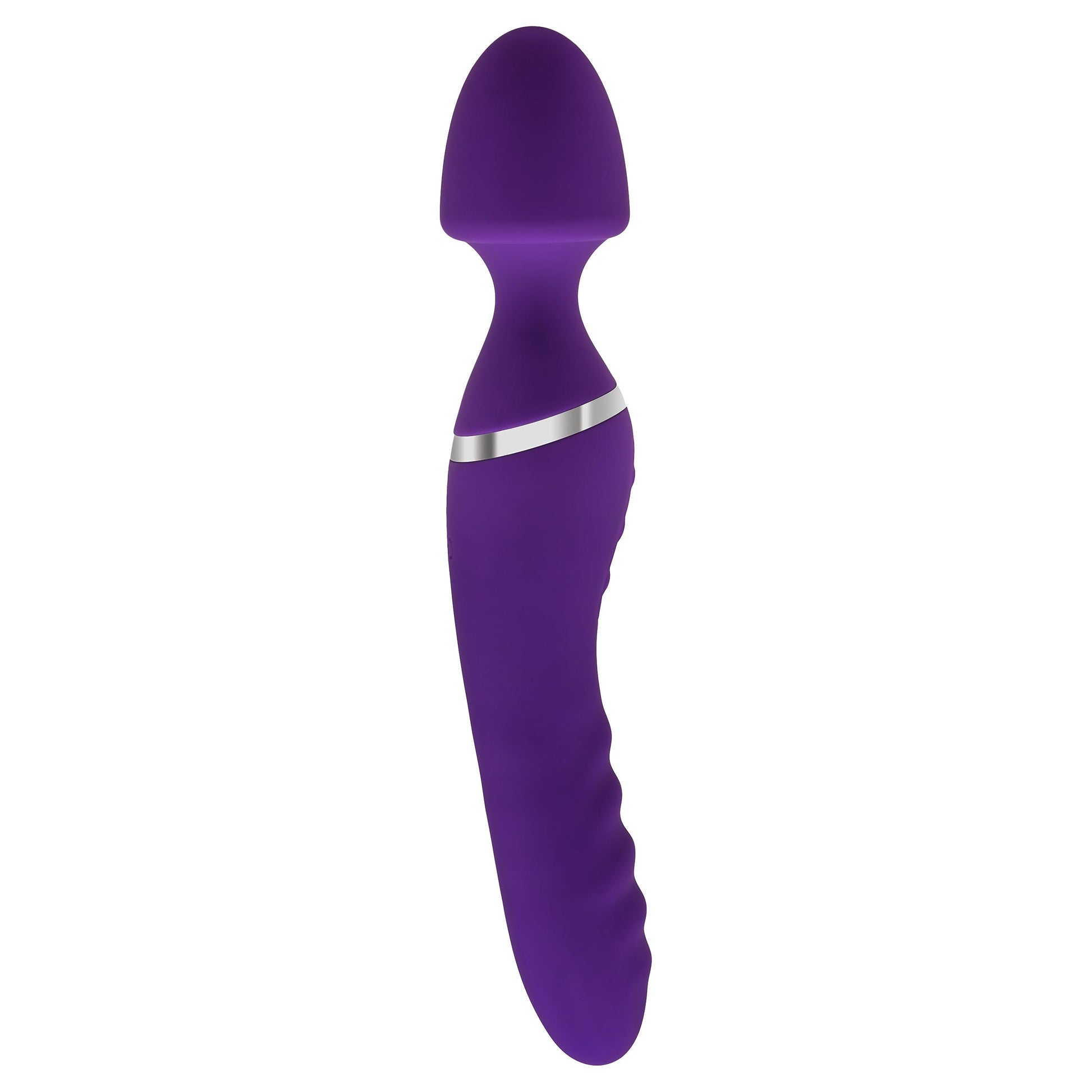 Experience twice the fantasy fun! This dual-ended rechargeable silicone toy lets you enjoy strong wand vibrations on one side, and thrills from its twirling vibrating heated shaft on the other. The wand's smooth head fits your body's tightest spots for targeted, powerful pleasure. Or take a deep ride on it's vibrating, twirling, and heated shaft end until you feel body-quaking bliss. It's even submersible for underwater thrills.