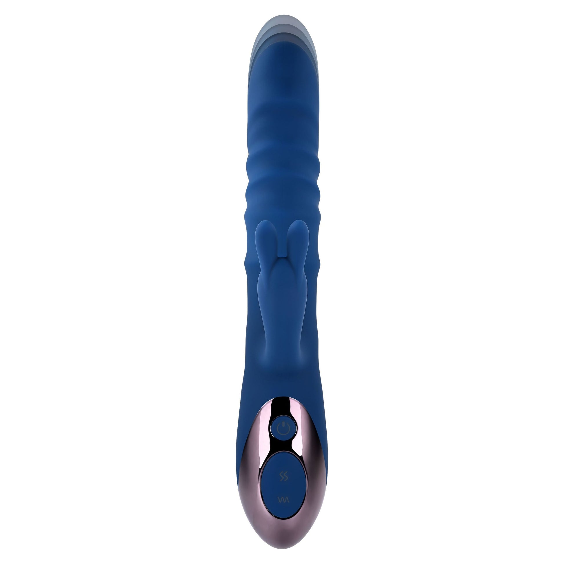 Feel the thrusting power of this dual vibe that features a double-ring design in the main shaft. Powerful thrusts of up to half an inch are deliciously enhanced by two rings that move up and down in 3 glorious speeds for an exquisite internal massage. Turn on the 7-speed rabbit shaft next (controlled separately) for the maximum pleasure experience, even under water as this toy is completely submersible. Ergonomic controls, magnetic rechargeable and easy to clean.