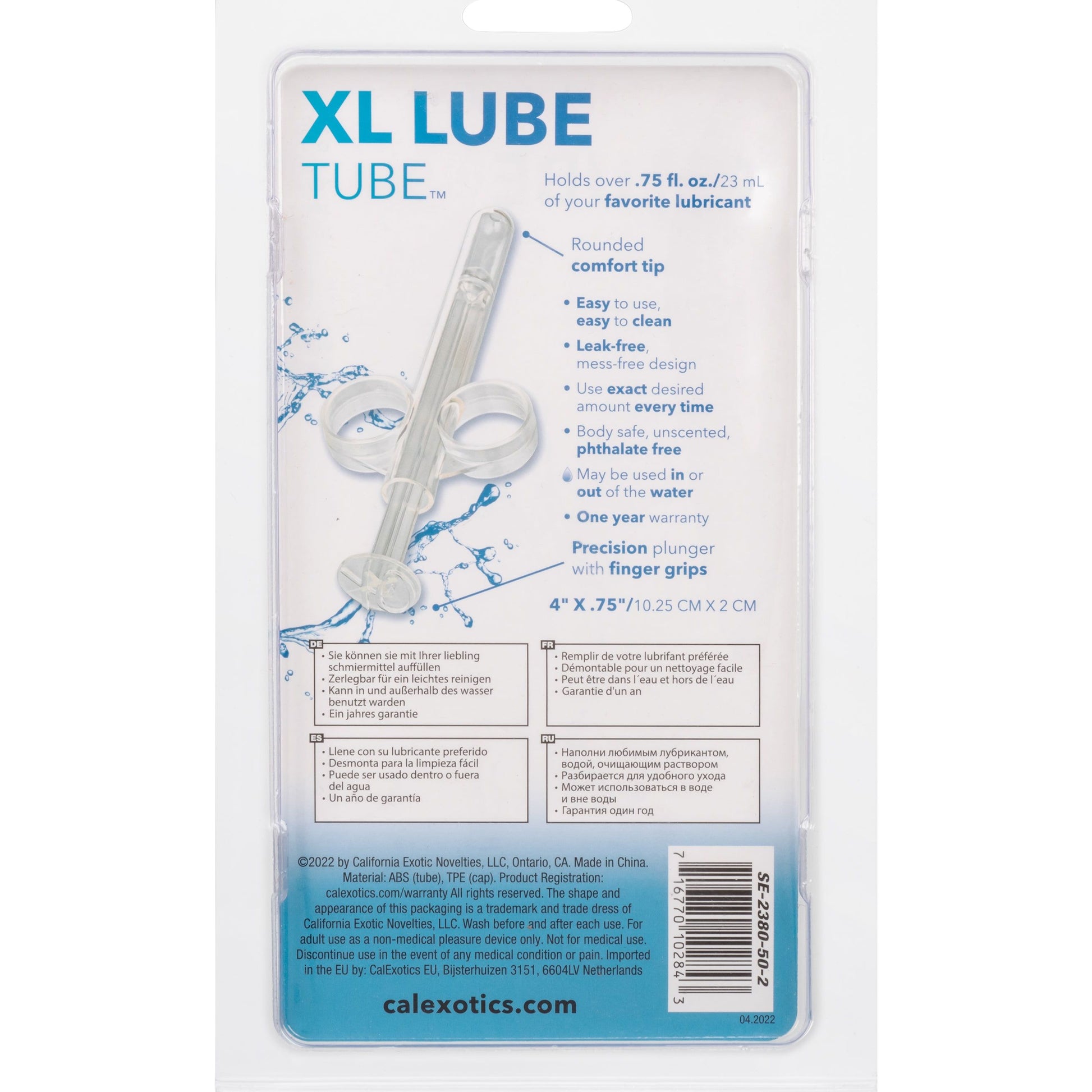 Reusable, refillable, and easy to clean, the XL Lube Tube is a lubricant dispensing tube that lets you lubricate with pinpoint precision and holds up to 0.75 fl oz of lubricant. To deliver luscious lubrication to just the right spot the XL Lube Tube has a slim shaft, rounded tip and seamless body. The slim tube is equipped with two finger loops and an easy-to-use plunger that make it easy to control the lubricant flow. Simply fill the tube with your chosen liquid or lubricant and use the slim tip to deliver the perfect dose to just the right spot every time. This tube is easy-to-use and easy-to-clean.